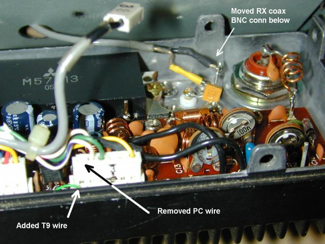 I also made some difficult mods to the radio and added an external LCD display with a PIC microprocessor. This makes the frequency display readable in bright daylight and shifts the frequency to a 10368 base. For those brave enough to attempt it, notes can be accessed here - tr9k_lcd.zip -- start by reading LCDmods.txt