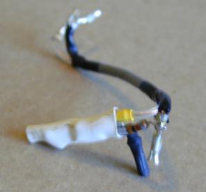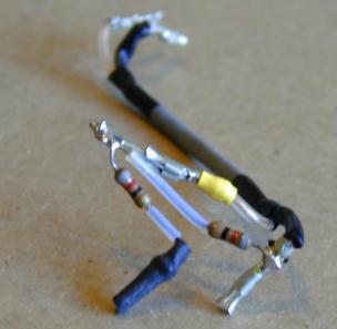The picture above, shows the completed attenuator and coax. It is ready to be slipped onto the DO and E pins on the TX board. The far end of the coax goes to the IN and E pins on the Final board.